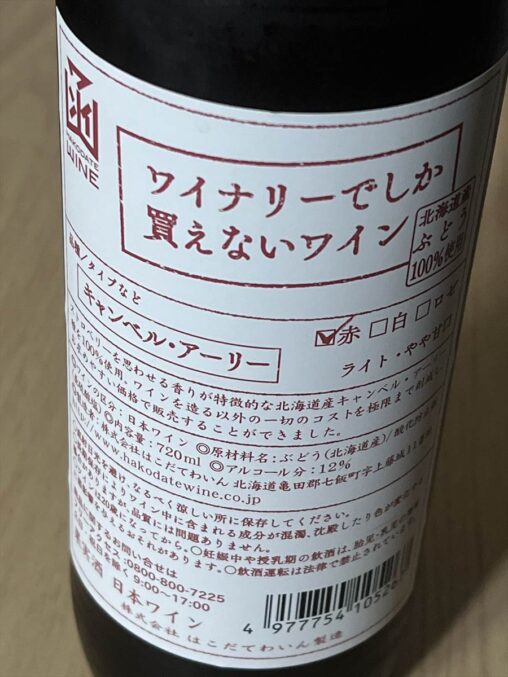 ワイナリーでしか買えないワイン(はこだてわいん / 北海道)