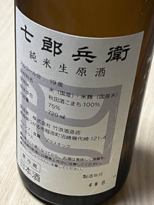 七郎兵衛 純米生原酒(竹浪酒造店 / 青森県)