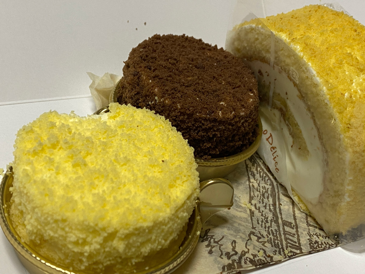 ドゥーブルフロマージュプチ400円、ドゥーブルショコラプチ400円、北海道はちみつロール350円、ふらの牛乳プリン350円、バトンフロマージュ(自然の恵み)1700円、袋20円