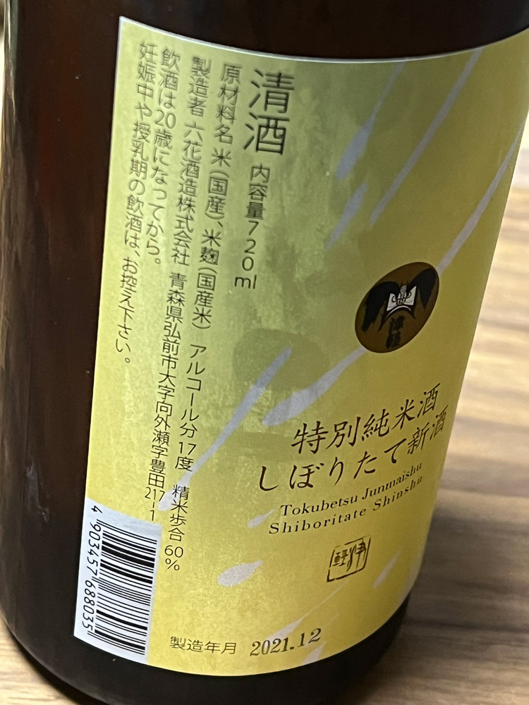 じょっぱり 特純しぼりたて新酒(六花酒造 / 青森県)