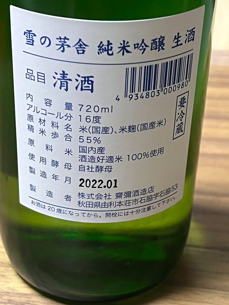 雪の茅舎 純米吟醸 生酒(齋彌酒造 / 秋田県)