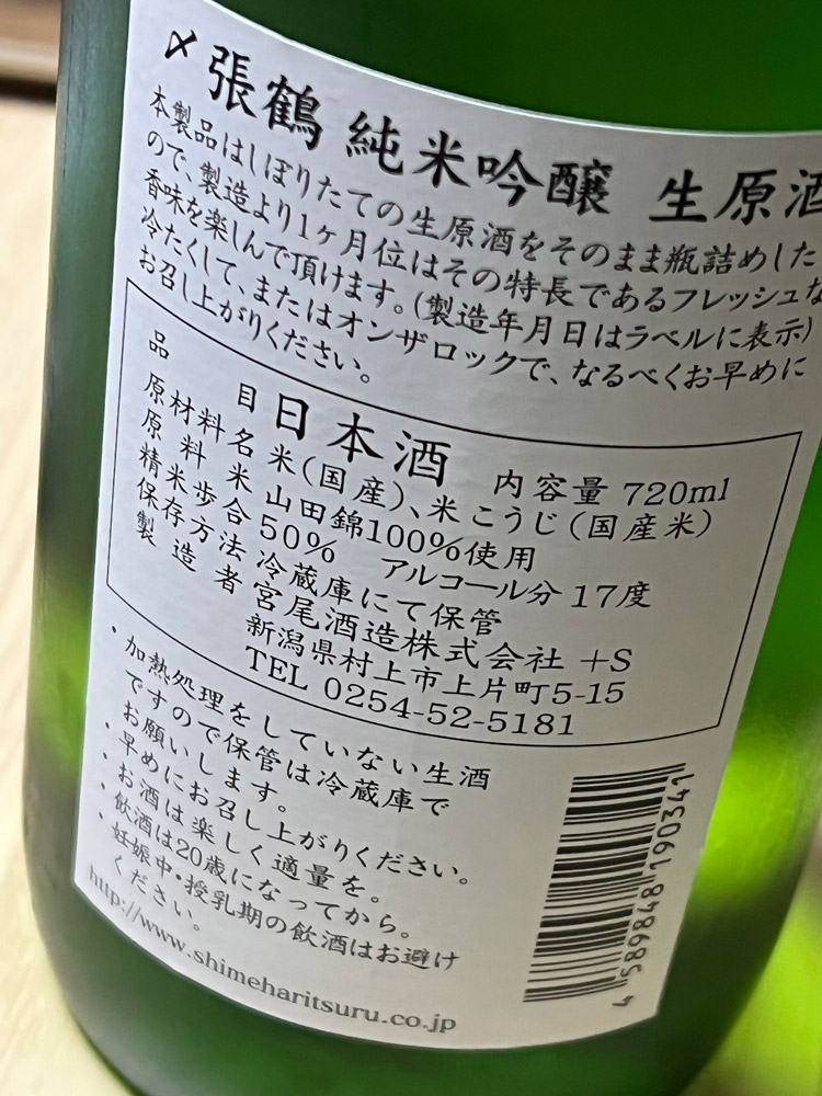 〆張鶴 純米吟醸 生原酒(宮尾酒造 / 新潟県)