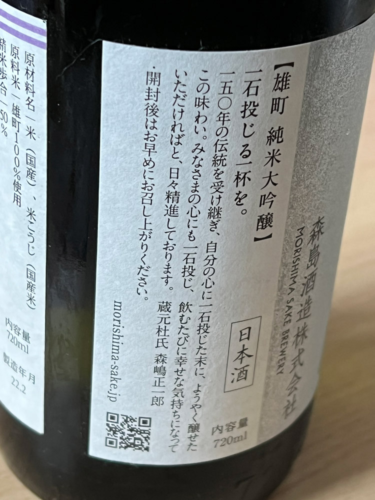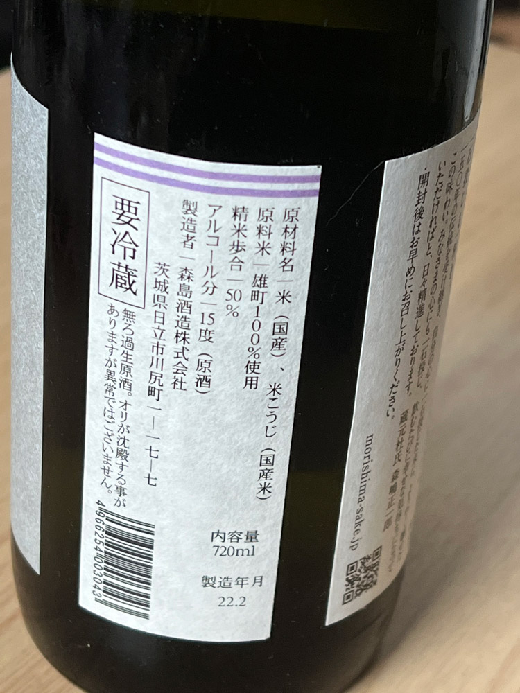 森嶋 雄町 純米大吟醸しぼりたて生原酒(森島酒造 / 茨城県)