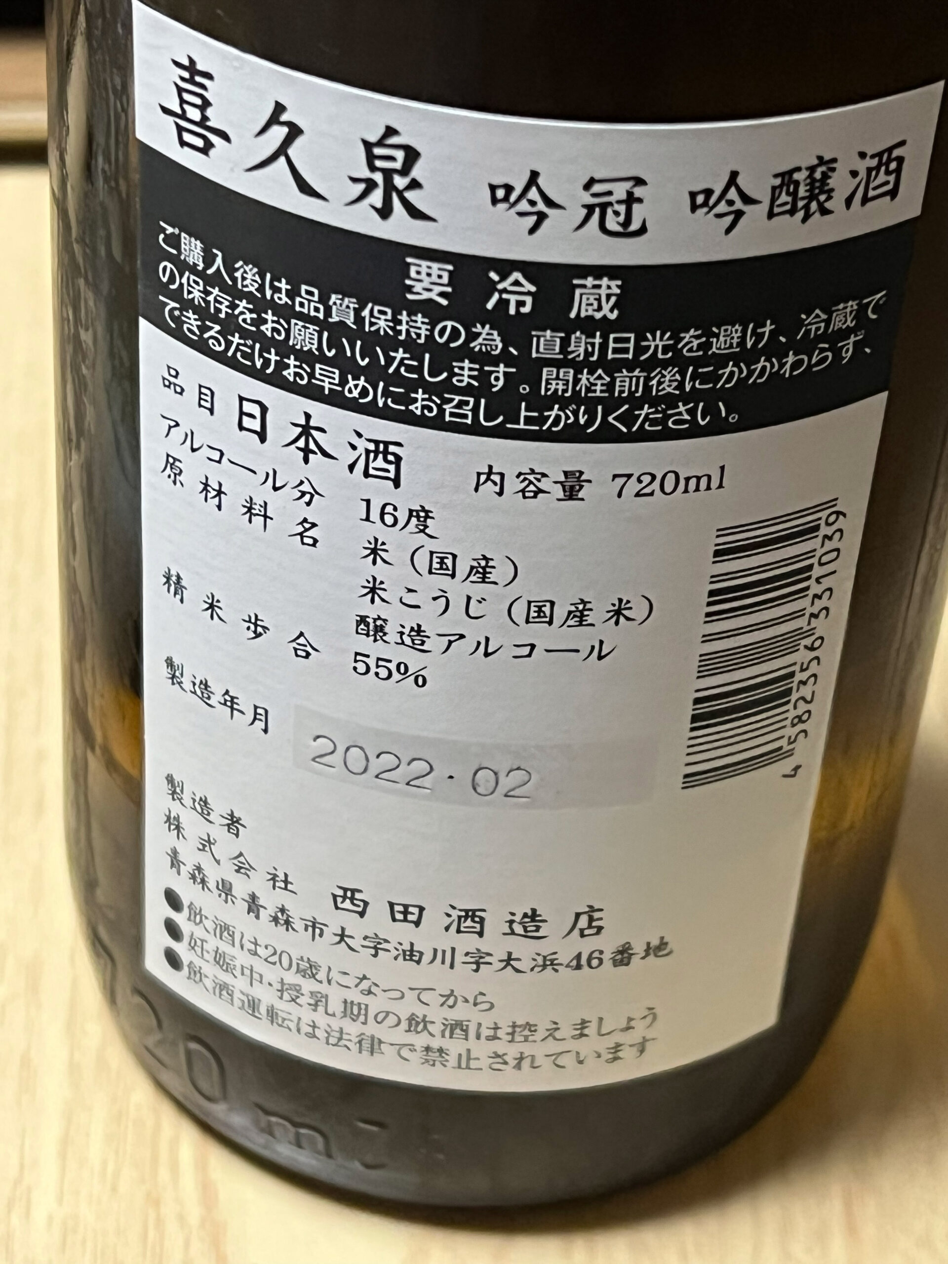 喜久泉 吟冠 吟醸造(西田酒造店 / 青森県)