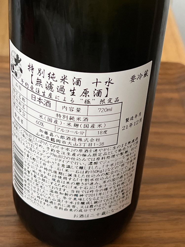 大山 十水 無濾過生原酒「極」限定酒(加藤嘉八郎酒造 / 山形県)