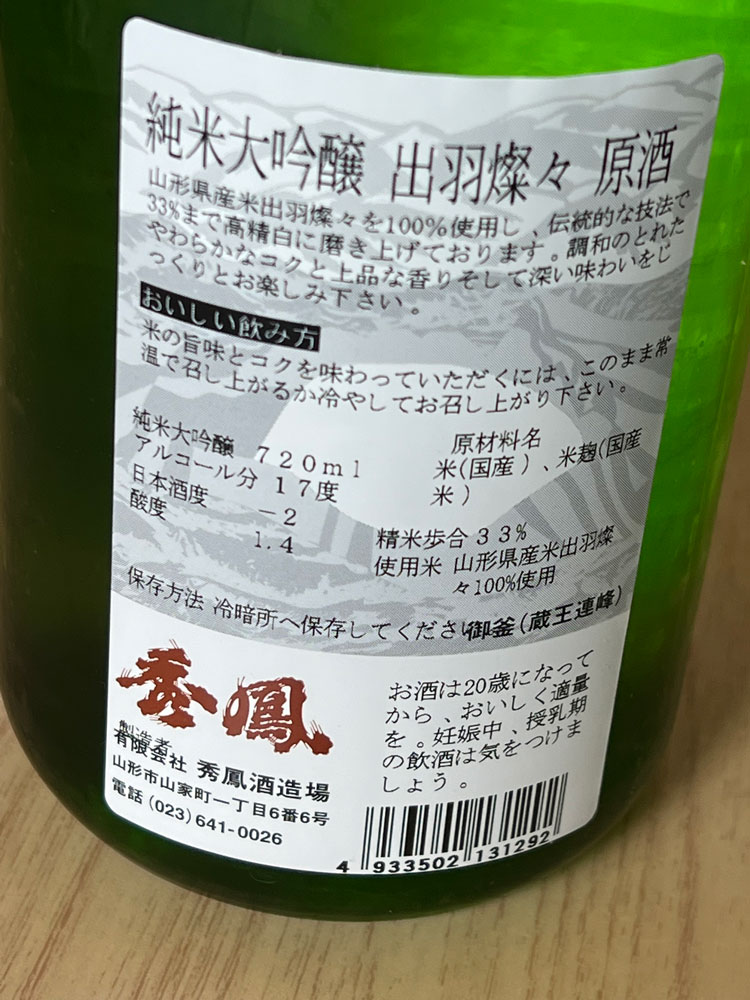 秀鳳 純米大吟醸 出羽燦々33%(秀鳳酒造場 / 山形県)