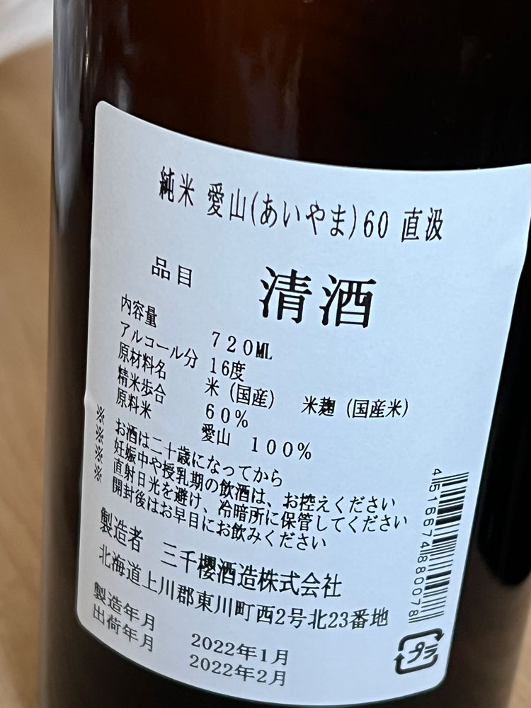 三千櫻 純米 愛山60生原酒(三千櫻酒造 / 北海道)