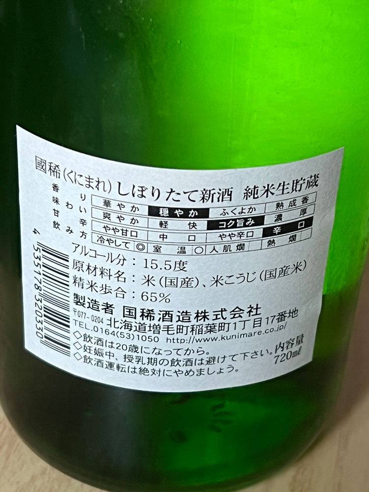 国稀 純米生貯蔵 しぼりたて新酒(国稀酒造 / 北海道)