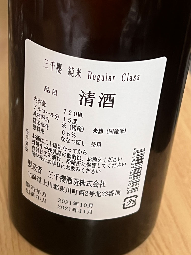 三千櫻 純米 R class(三千櫻酒造 / 北海道)