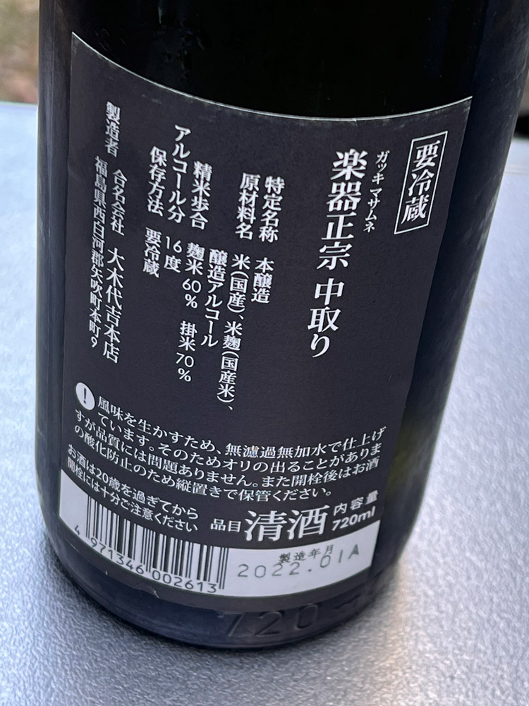 楽器正宗 本醸造 中取り(大木代吉本店 / 福島県)