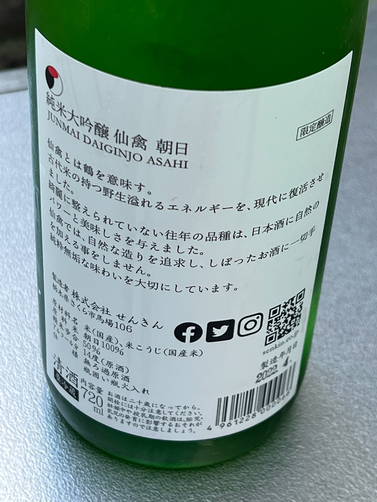 仙禽 純米大吟醸 朝日(せんきん / 栃木県)
