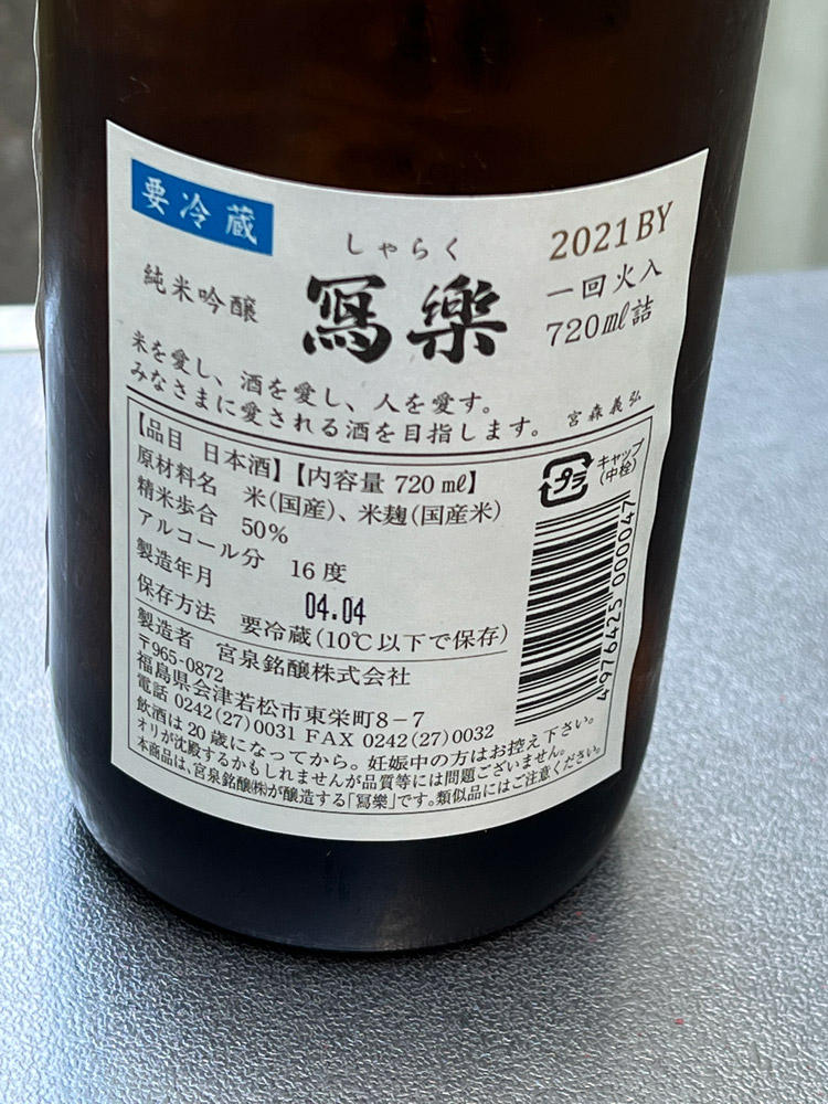 冩樂 純米吟醸(宮泉銘醸 / 福島県)