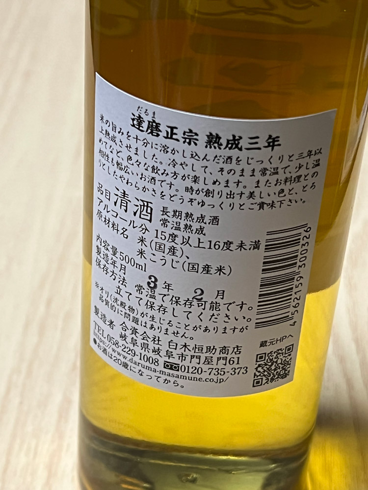 達磨正宗 熟成三年(白木恒助商店 / 岐阜県)