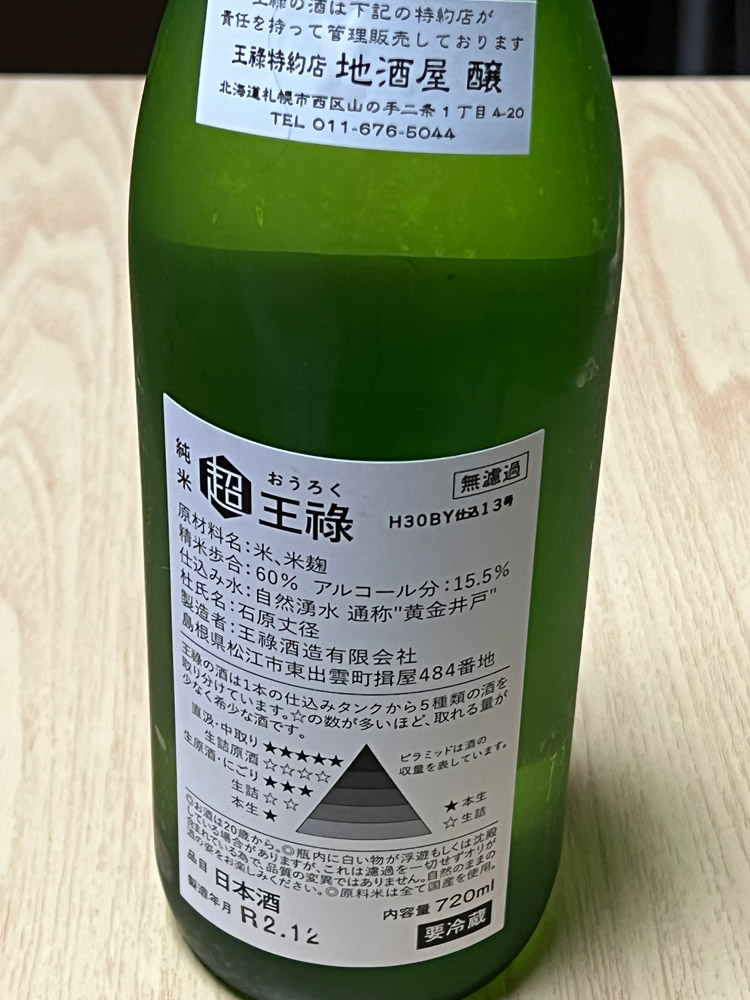 超王録 純米 H30BY(王祿酒造 / 島根県)
