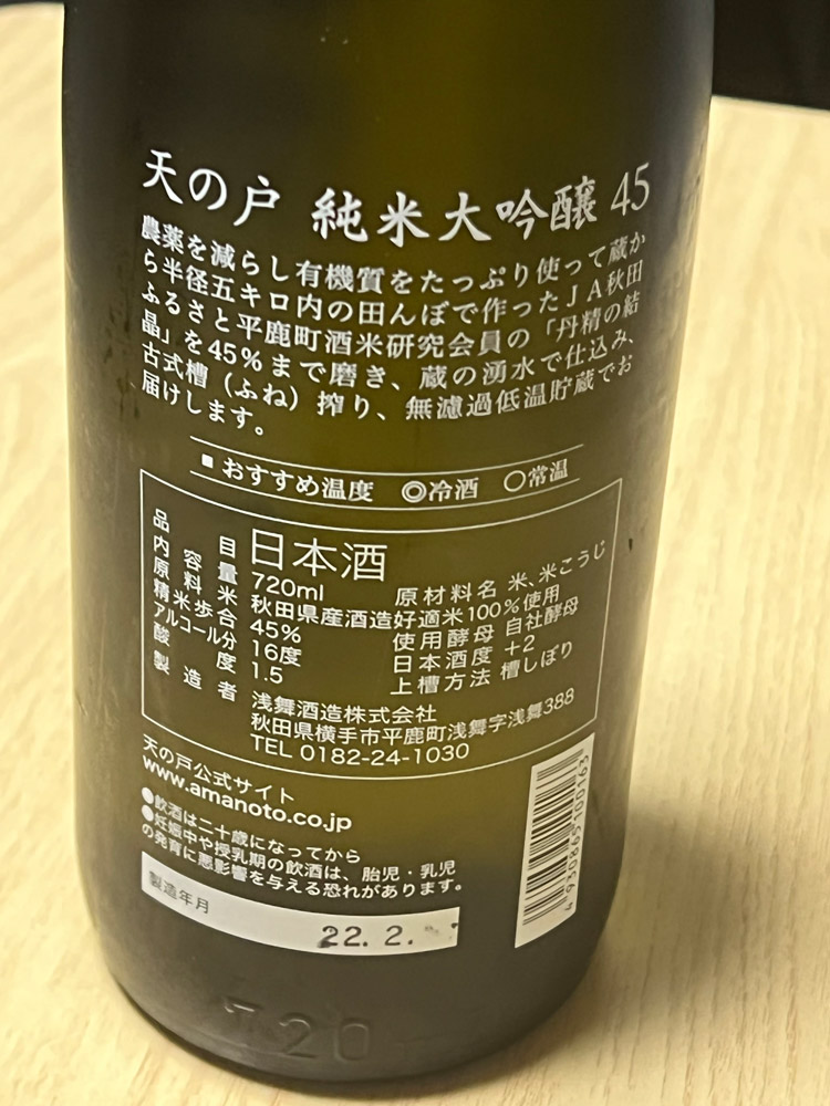 天の戸 純米大吟醸45(浅舞酒造 / 秋田県)