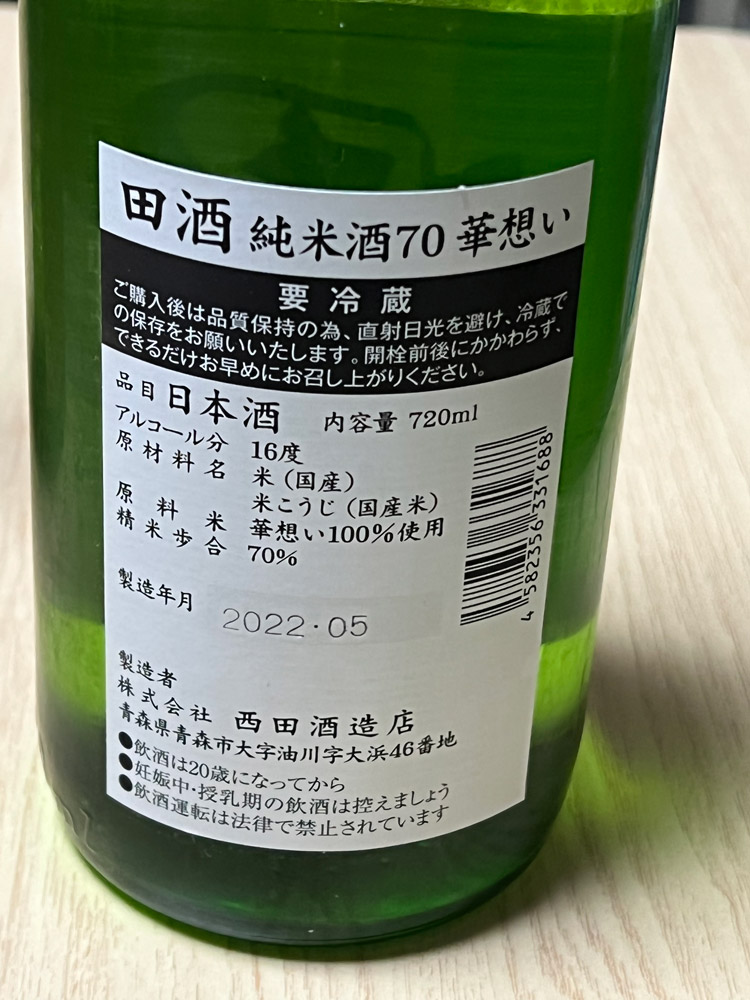 田酒 純米酒70 華想い(西田酒造店 / 青森県)