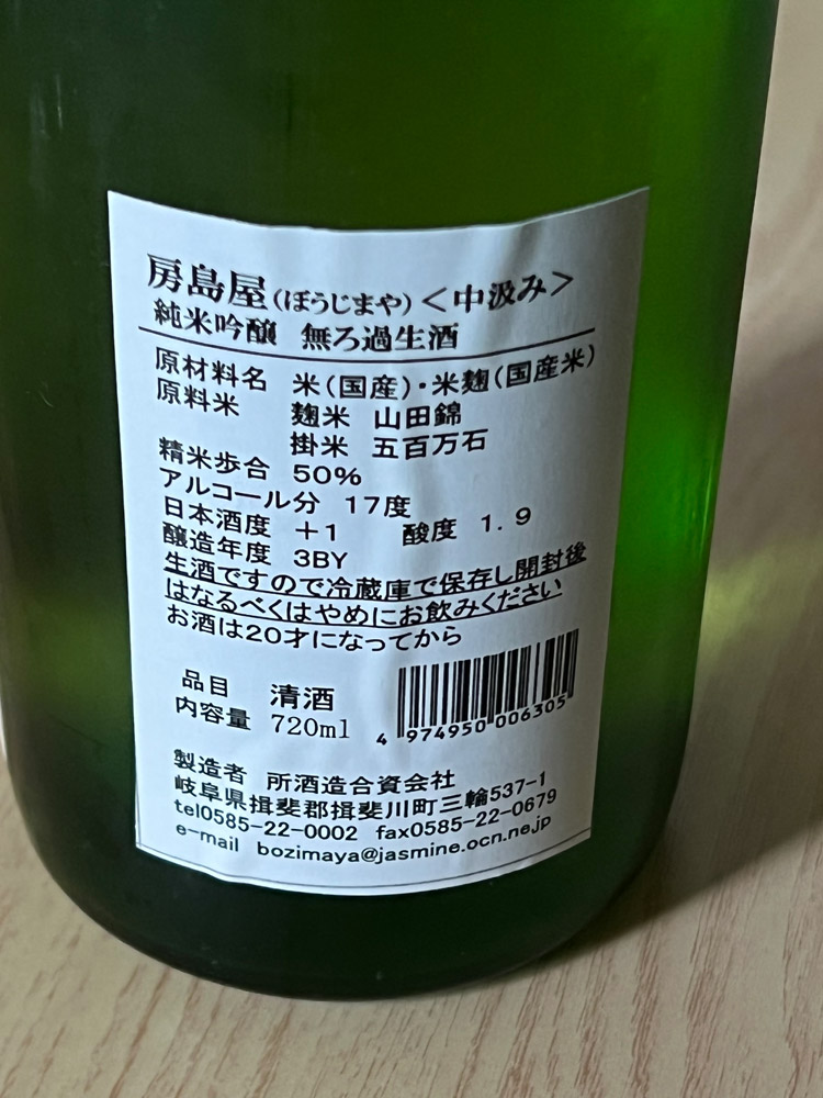 房島屋 純米吟醸 無濾過生原酒 中汲み(所酒造 / 岐阜県)