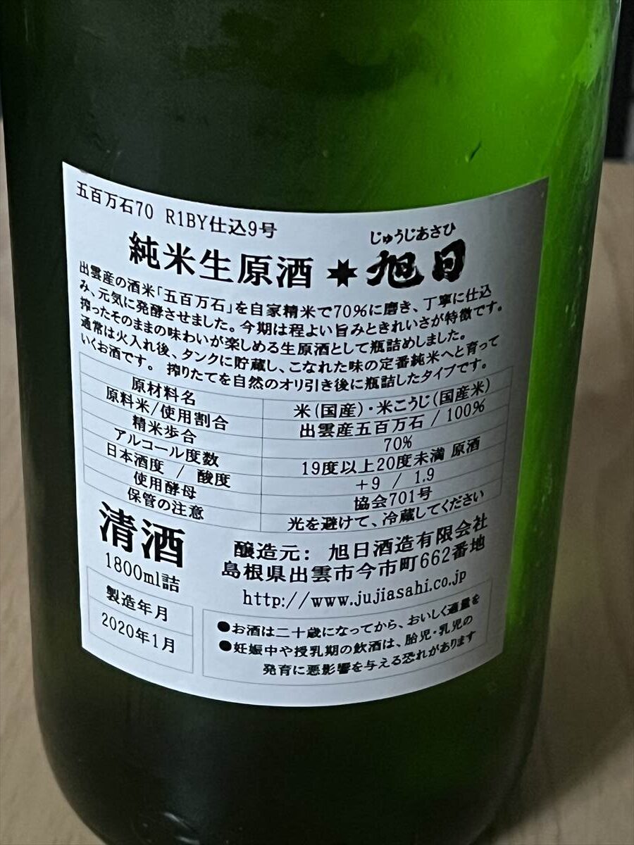 十旭日 純米生原酒 五百万石70(旭日酒造 / 島根県)