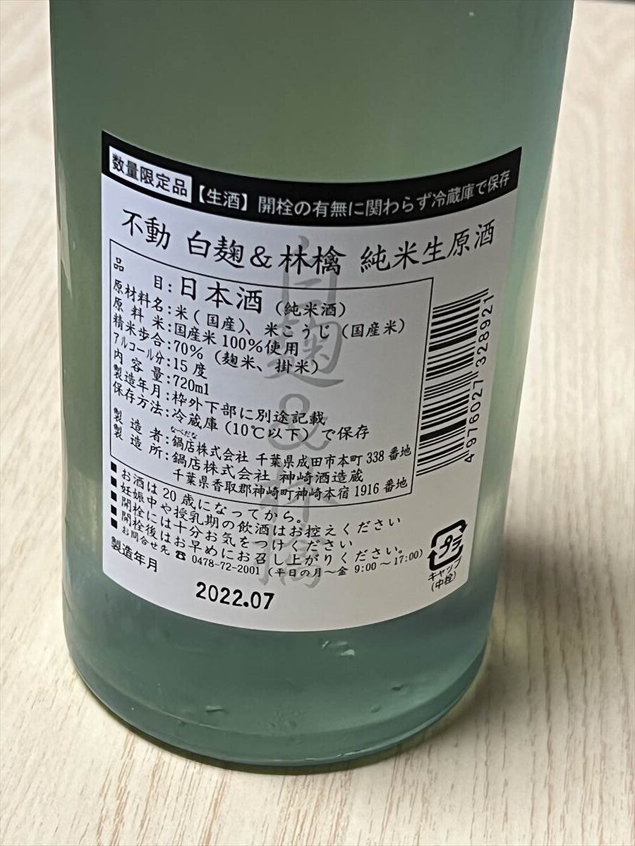 不動 白麹&林檎 純米生原酒(鍋店 / 千葉県)