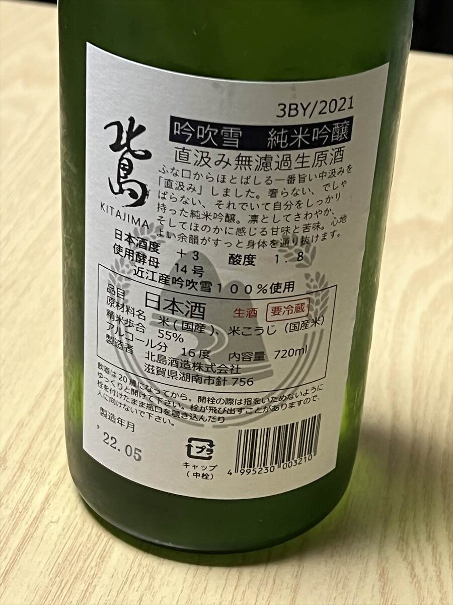 北島 純米吟醸 吟吹雪 直汲み生原酒(北島酒造 / 滋賀県)