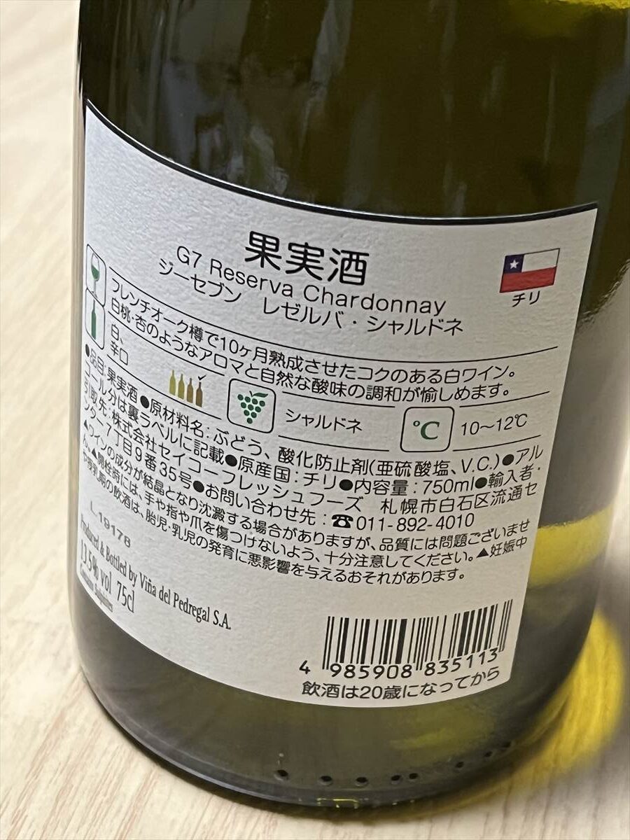 ジーセブン シャルドネ レゼルバ(チリ)