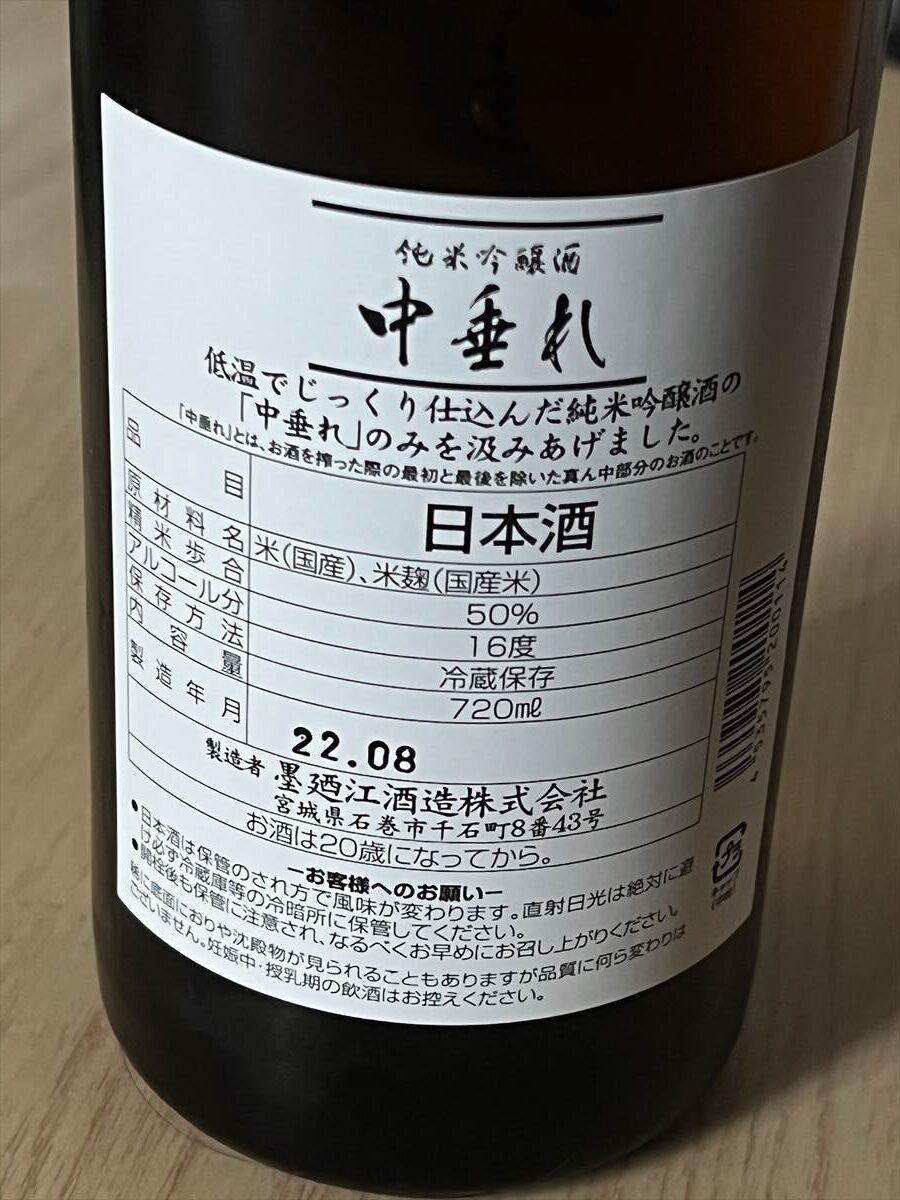 墨廼江 純米吟醸 中垂れ(墨廼江酒造 / 宮城県)