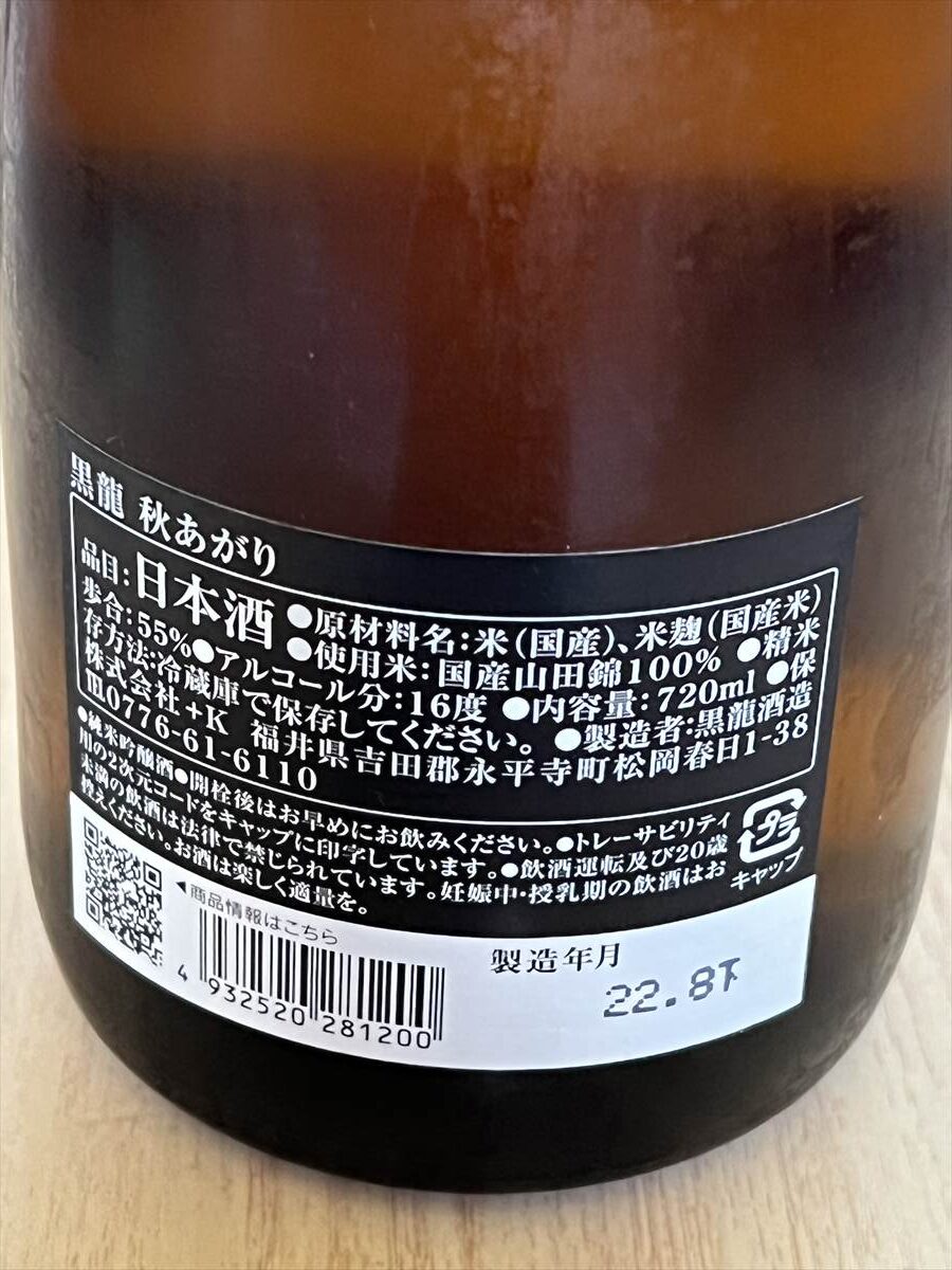 黒龍 秋あがり(黒龍酒造 / 福井県)
