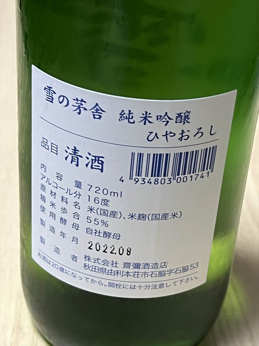 雪の茅舎 ひやおろし(齋彌酒造店 / 秋田県)